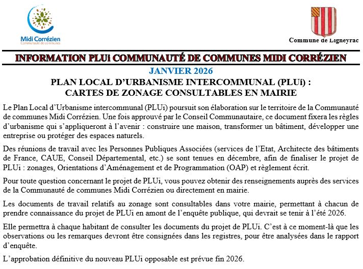 Les cartes de zonage du futur Plan Local d’Urbanisme Intercommunal sont consultables en mairie.