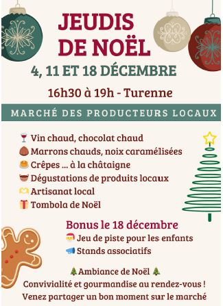 les "3 jeudis de Noël" du marché des producteurs locaux à Turenne.